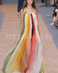 Chloe designed its collection with dominant colors navy blue, peach pink, blue, light green, rainbow hues, black, ivory, indigo. Materials: washed crépon, silk, macramé lace, georgette crepe, jersey. Lengths: various. We present the full collection.
